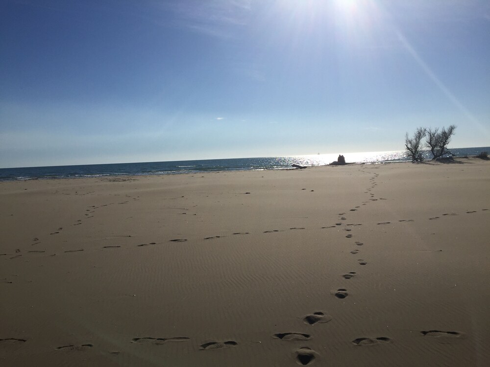 Bonne baignade, bonne journée !. Drapeau vert susceptible d'être jaune dans la journée. L'est des saintes maries de la mer est la partie la plus sauvage.